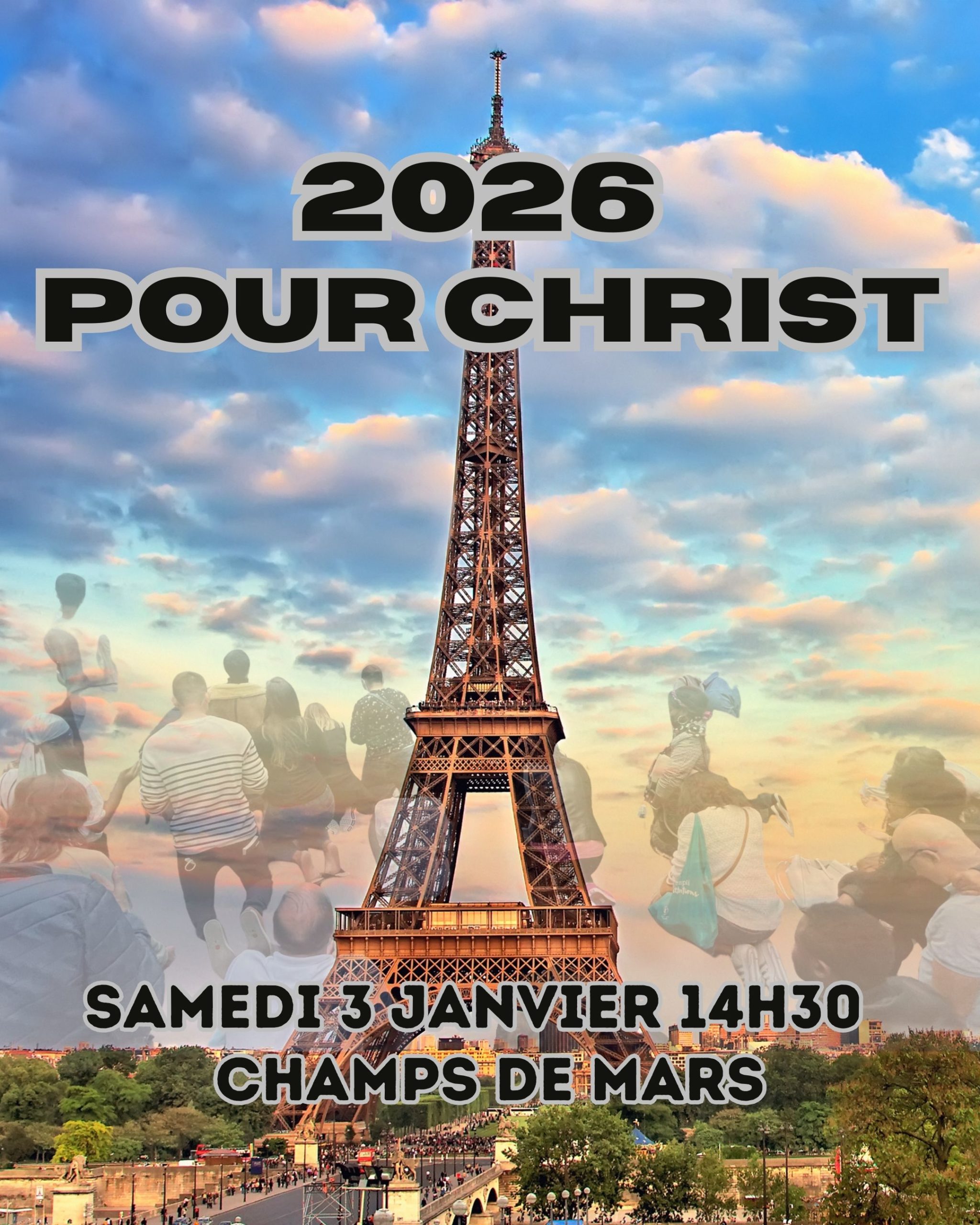 Tour Eiffel Tour Eiffel, Paris🔥 2026 POUR CHRIST 🔥 On se retrouve le Samedi 3 Janvier 2026 à 14h30 au champs de Mars en bas de la tour Eiffel (localisation ci dessous). Nous vous proposons de jeûner le Samedi 3 Janvier avant de se retrouver sur place. C'est un temps de prière et d'intercession prophétique pour l'année 2026. Nous […]